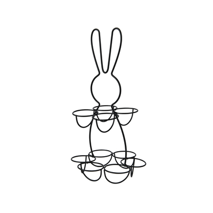 Stilvoller Eierhalter für moderne Osterdekoration. Der Hasen Eierständer ist ein dekorativer Blickfang für die Osterzeit und verbindet Funktionalität mit modernem Design. Gefertigt aus robustem Eisen und in zeitlosem schwarz gehalten, eignet sich dieser Eierhalter ideal für stilvolle und minimalistische Oster- und Frühlingsdekorationen. Mit seinen Maßen bietet der Eierständer ausreichend Platz, um Ostereier dekorativ in Szene zu setzen. Das Hasen-Motiv verleiht dem Ständer einen klaren Osterbezug, ohne verspielt zu wirken – perfekt für moderne Wohnstile, skandinavische Einrichtungen oder elegante Tischdekorationen. Ob auf dem Esstisch, Sideboard, Fensterbrett oder im Eingangsbereich: Der Eierständer lässt sich vielseitig einsetzen und kann hervorragend mit Naturmaterialien, Kerzen oder weiteren Osterdekorationen kombiniert werden.