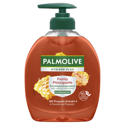 Pflege die Hände deiner ganzen Familie mit der Palmolive Hygiene Plus Family Flüssighandseife. Sie reinigt deine Hände hygienisch mit einem natürlichen antibakteriellen Inhaltsstoff. Unsere Flüssigseife hat eine sanfte Formel mit Propolis-Extrakt, die dermatologisch getestet ist. Deine Familie wird den wunderbaren Duft lieben. Inhaltsstoffe: Aqua, Sodium Laureth Sulfate, Lactic Acid, Sodium Chloride, Cocamidopropyl Betaine, Citric Acid, Sodium Benzoate, Sodium Hydroxide, Glycerin, Parfum, Trisodium Ethylenediamine Disuccinate, Propolis Extract, CI 16035.