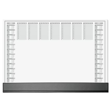 Funktionale Schreibunterlage in hoher Papierqualität mit schwarzer Kunststoff-Schutzleiste an der Unterkante für lose Zettel. Die Schutzleiste und die stabile Leimung an der Unterkante und partiell an der Oberkante verhindern zuverlässig ein Umknicken der Ecken. Sichere Planlage durch stabilen Rückendeckel.