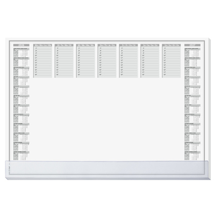 Funktionale Schreibunterlage in hoher Papierqualität mit transparenter Kunststoff-Schutzleiste an der Unterkante für lose Zettel. Die Schutzleiste und die stabile Leimung an der Unterkante und partiell an der Oberkante verhindern zuverlässig ein Umknicken der Ecken. Sichere Planlage durch stabilen Rückendeckel.