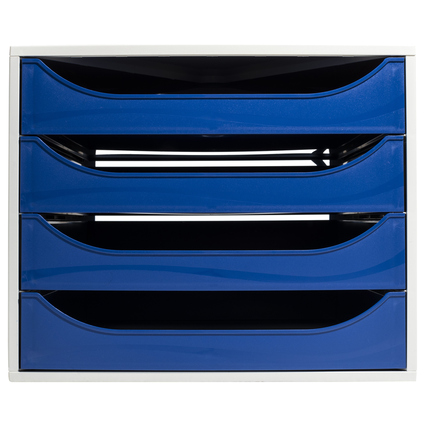 Soennecken Schubladenbox oeco 4 Schubladen DIN A4+ Kunststoff, 98 % recycelt Gehäusefarbe: lichtgrau Farbe der Schublade: blau