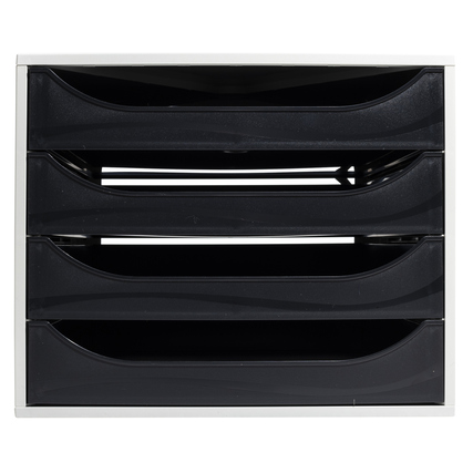 Soennecken Schubladenbox oeco 4 Schubladen DIN A4+ Kunststoff, 98 % recycelt Gehäusefarbe: lichtgrau Farbe der Schublade: schwarz